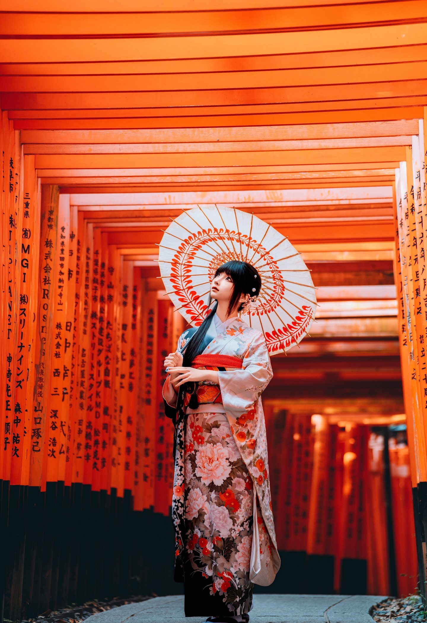 《秋寻》红和服